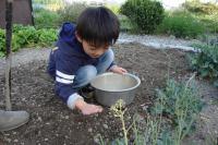 ジージのご指導のもと、とうもろこしの種をまいた。