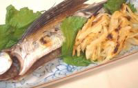 魚屋さんが「ヒレを取ったら ただの魚になっちゃうから つけて 焼いたほうがいい」と言うので 中だけ出して焼いたのだった。