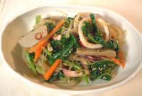 小松菜 イカ 人参 もやし 春雨などは茹でておく。