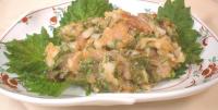 たっぷりの新玉ねぎのみじん切り まぐろ(カツオでもいい)のぶつ切り 青ジソの千切りに 味噌を混ぜる。