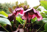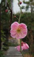 寒々している北庭で、しだれ梅とクリスマスローズが咲き始めた。