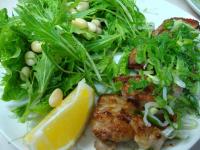 作り置きしてある塩麹をチキンに混ぜこみ、小麦粉をつけてこんがり焼いた。