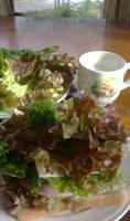 畑からサニーレタス2種・さんちゅ・サラダ菜・パセリなど採ってきてどっさり〜