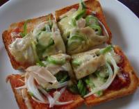 パンにピザソースを塗り、のせて のせて〜〜♪