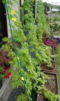 エコカーテンゴーヤが、ぐんぐん伸びている。