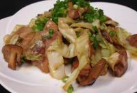 鶏肉を まず 焼き、堅い野菜から順に入れ炒め 最後に 味醂・醤油で味を調え 小ネギのみじん切りをちらす。